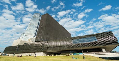 18階建てビルの壁面が巨大LEDスクリーンになっているシンボリックな建物が「M+」。アジア初の現代ヴィジュアル・カルチャー美術館です。幅広いアートを斬新な手法で展示しており、6万5000平米の建物内に、33の展示室、3つの映画館、視聴覚ライブラリー、ルーフテラス、 ミュージアムショップやカフェ・レストランなどが備わっております。